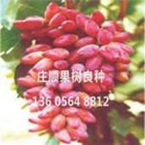 紅乳:歐亞雜交種,9月初成熟,平均穗重600克,大穗2000克,平均粒重16克,果型細長,果頂尖,紅的晶營剔透,果味特甜,含糖量27%,口感好,樹體木質化強,果實還未成熟,新枝已全部木質化,抗病性不亞于歐美雜交種,耐貯運。株價:嫁接苗:6元,自根苗4元