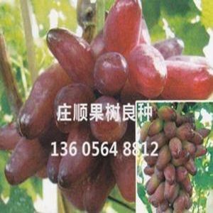 紅指:平均穗重580克,穗重1500克,果粒長橢圓至圓柱形,平均粒重12克,粒重15克,比美人指,紅乳大的多,8月上旬著色完好,可延遲9月上中旬采收,品質(zhì)更好,充分成熟紫紅色,果粒比美人指還長,艷麗奪目,含糖21%-25%,。株價:嫁接苗:15元,自根苗10元