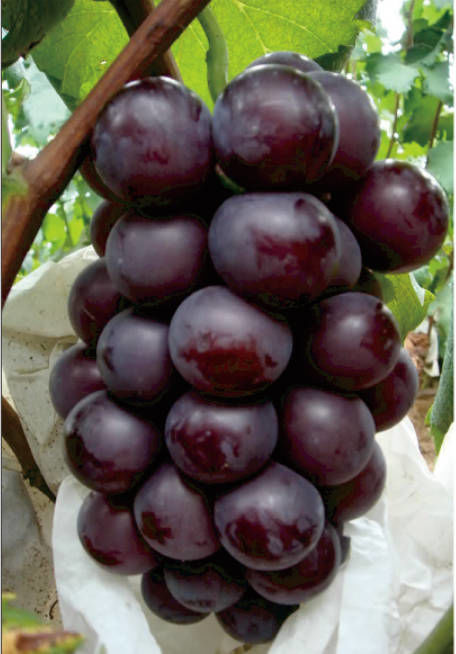 藤稔(乒乓球葡萄):8月上旬成熟,單粒重19---25克,單穗重580克,不落粒,深黑紫色,汁多味甜,可溶性固形物19.8%,品質(zhì)上等,皮厚耐貯運(yùn),豐產(chǎn)易栽培。此品種是世界上公認(rèn)的粒的超級(jí)新品種,品質(zhì)上等,市場(chǎng)競(jìng)爭(zhēng)力強(qiáng),豐產(chǎn),大粒,是有發(fā)展前途的抗病新品種,南方均可栽培。株價(jià):9元/株,百株價(jià):6元/株,千株價(jià)5元/株