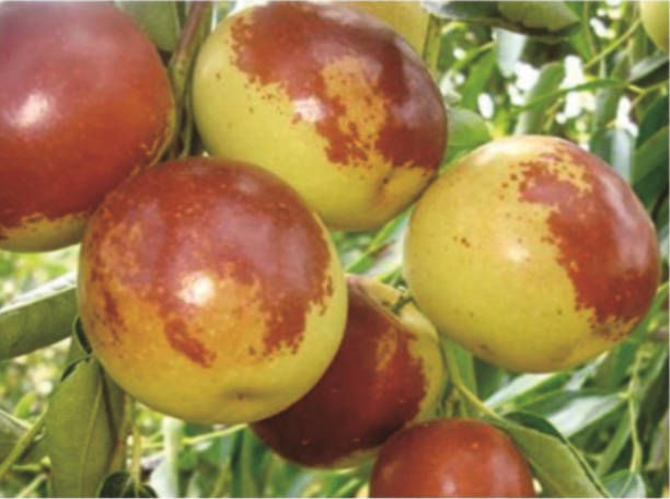 沾化冬棗(魯北冬棗):10月上中旬成熟,果實(shí)近圓形,單果重14-23克紫紅色,富有光澤,皮薄,核小,肉質(zhì)細(xì)嫩,生食無(wú)渣,酥脆多汁,濃甜爽口,有冰糖味,風(fēng)味絕佳,含糖27%-30%,可溶性固形物34%-38%,品質(zhì)號(hào)抗病,不裂果,是晚熟品質(zhì)佳的優(yōu)良品種。株價(jià):40-70公分4元,70公分-1米5元,1米以上6元,二年生9元。