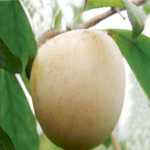 恐龍蛋:杏基因占25%,李基因占75 % ,果實7 月下旬至8 月上旬成熟,單果重120-140 克,果皮黃紅色,伴有紅色斑點,果肉粉紅色,質(zhì)脆、粘核,果汁味香甜,品質(zhì)好,含可溶性固形物18%- 20%果實發(fā)育期125天,樹勢強,樹體開張,授粉品種可選用味帝、味王。株價:40-70公分6元,70公分-1米7元,1米以上8元。二年生12元。