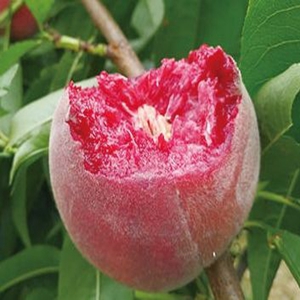 湖北大冶品種,平均單果重150克,果實6月初上市,可采到6月底,狗血桃皮肉鮮紅,水分充足,甘甜爽口,純甜無酸,七成熟時,果肉微紅,口感爽脆,八九成熟時,果肉通紅,可用手掰成兩瓣,口感脆中帶點軟糯。