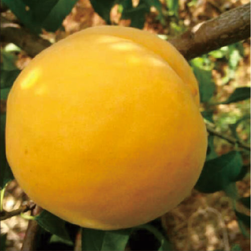 黃金冬桃:10月上旬成熟,果實近圓形,單果重500克,果肉純黃,套袋不反色,掛樹20天以上不軟,粘核,自花授粉,最大的賣點貨價期長,可溶性固形物16%,發(fā)展前景好。