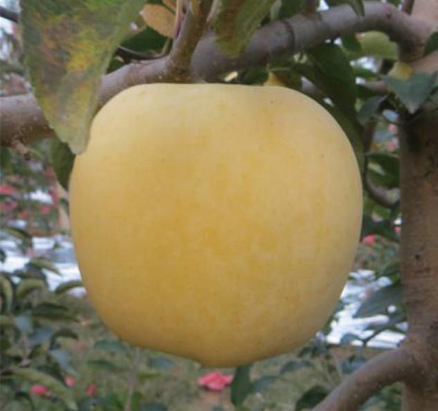 果實長圓形,平均單果重240克左右。不套袋果實的向陽面淺紅,套袋果面金黃色,果肉黃色,無酸味,甜味濃,果肉脆,果汁多、品質(zhì)好。10月中旬成熟,自然貯藏3個月以上,冷庫貯藏與富士相同。株價:70-100公分5元,100-150公分6元,150以上7元,(二年生10元)