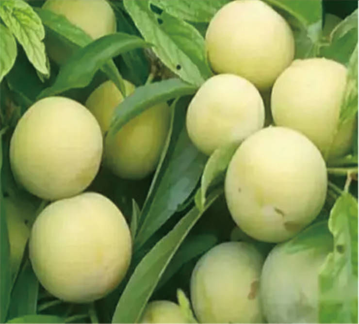 7月底成熟,單果重50克左右,果面綠黃,果肉淡黃,汁多味甜,微香,離核,蜜甜又清香,脆美可口,果實(shí)較耐運(yùn)輸。樹勢(shì)旺,抗病力強(qiáng),葉粗而厚,丘陵,平原都可大面積發(fā)展。株價(jià):40-70公分4元,70公分-1米5元,1米以上6元,二年生9元。