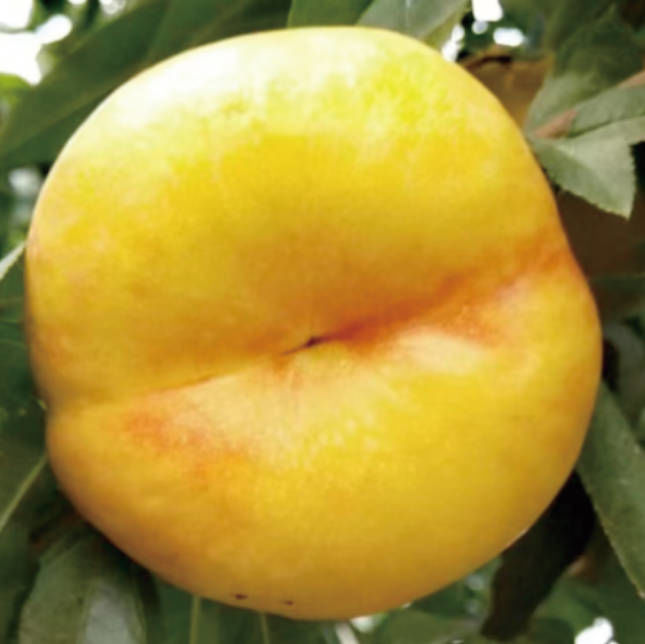 晚熟、高甜、黃肉油蟠桃新品種。單果重200-250g,大果350g以上;果肉黃色,硬溶質(zhì),離核,較耐貯運;風(fēng)味甜香,可溶性固形物16-18%。7月下旬至8月上旬成熟,套袋全黃。 50株起售,株價20元。