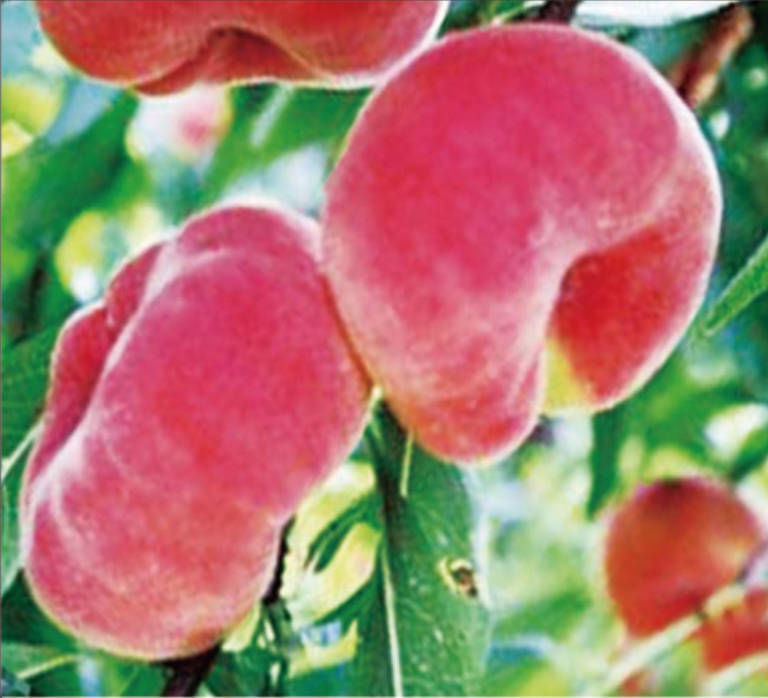 6月中下旬成熟,果實扁平,果頂凹陷,果面全紅。單果重180克,大果重300克。果肉黃色,硬溶質,風味濃甜,可溶性固形物含量14%,黏核,豐產。(未套袋果)50株起售,株價15元。
