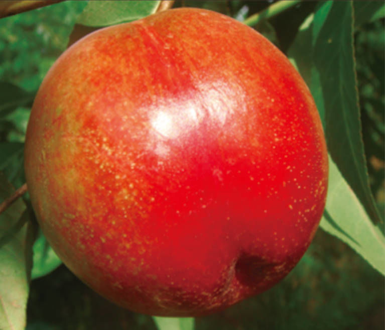 早熟白肉油桃,6月10日左右成熟。果實(shí)圓形,果面全紅,鮮亮;單果質(zhì)量180克,大果300克;果肉白色,皮下果肉有花青苷,肉質(zhì)為硬溶質(zhì),果肉硬度較大,較耐運(yùn)輸;果實(shí)風(fēng)味甜,可溶性固形物含量12.5%,黏核。50株起售,株價(jià)。15元。
